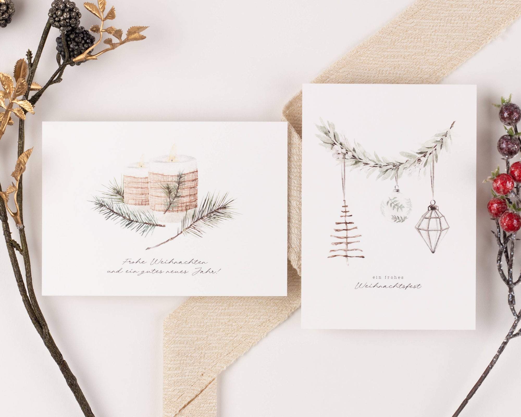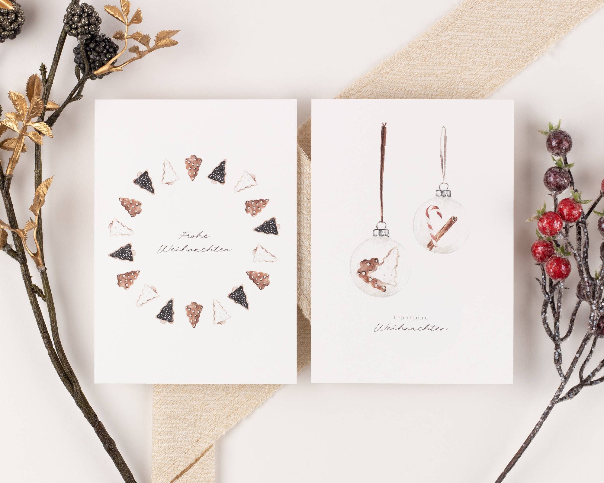 10 Weihnachtskarten Boho Aquarell Set, Strukturpapier (DE)